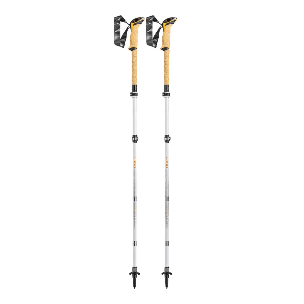 The natural cork grip stands out for its sweat-absorbing properties and ergonomic shape, reducing hand fatigue on multi-day hikes. The extended EVA foam section provides versatility for different grip positions during technical sections.
